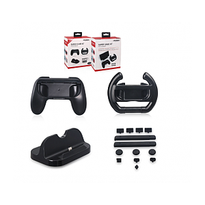 Accessoires de Joy-Con avec poignées volant, support manette, support de Charge et des Bouchons Anti-poussière - (liq)